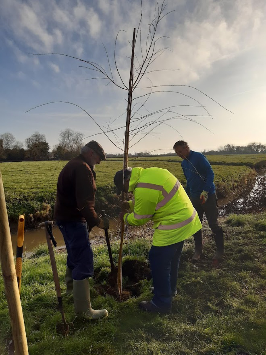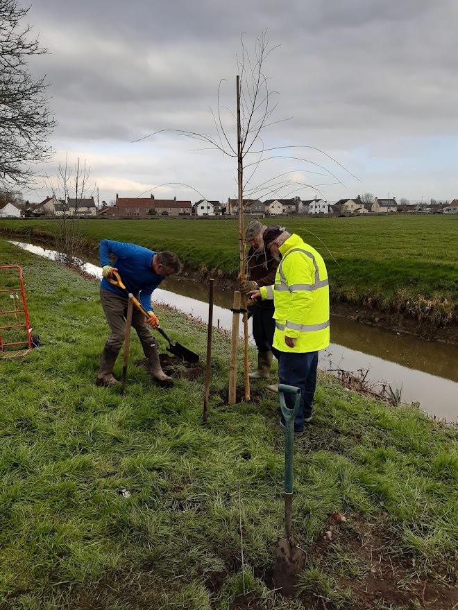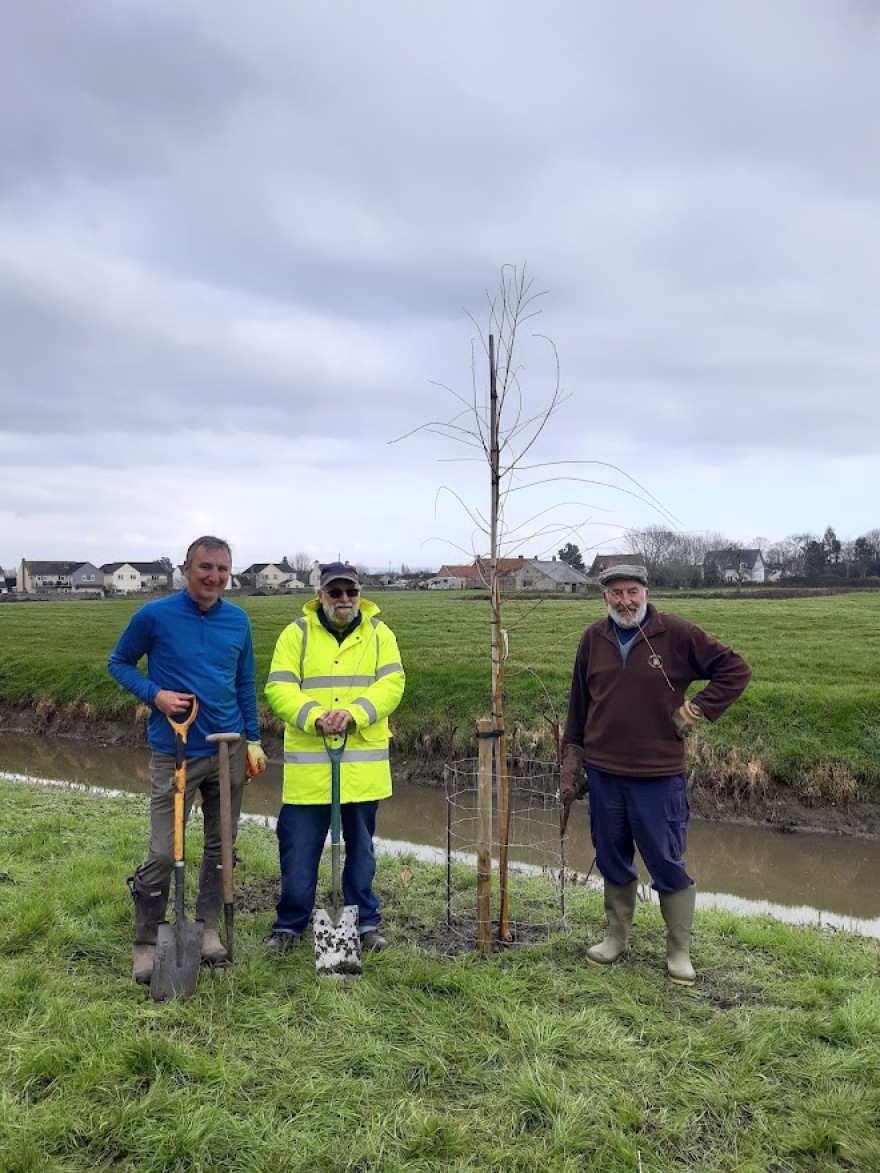 David Sellars, Tony Hocking and Geoff Francis plant the willow tree on Jubilee Green - 22nd January 2022